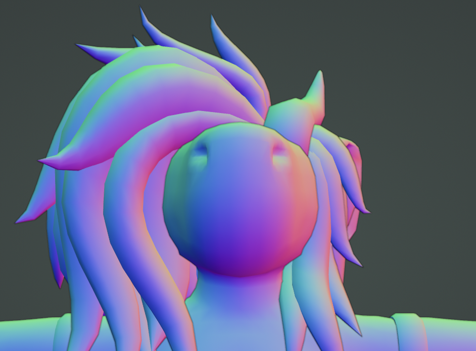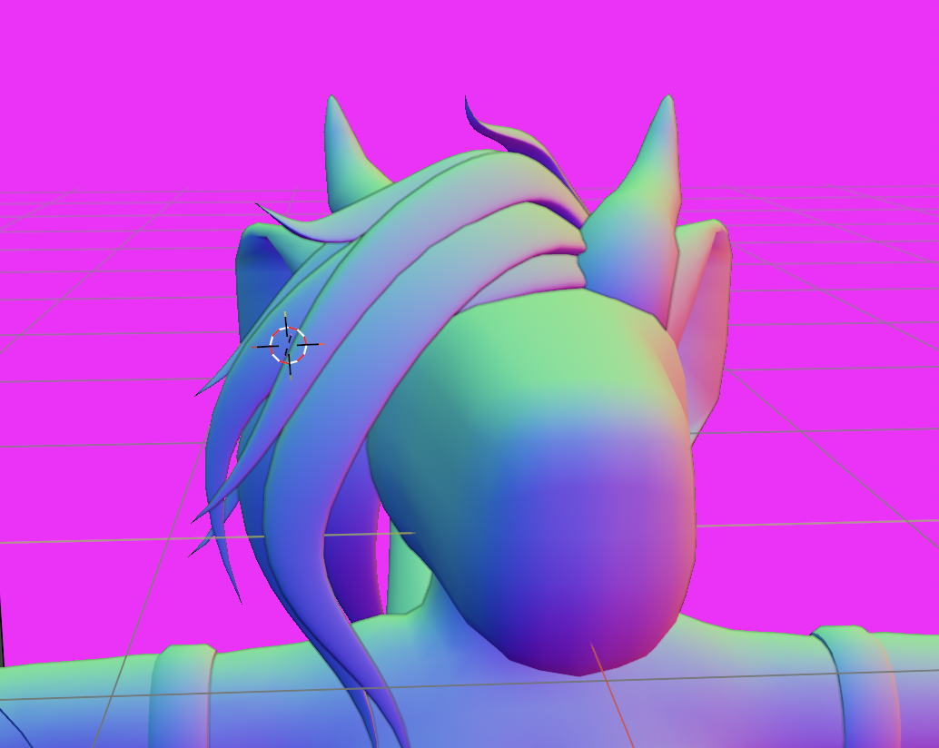 but oh gosh, the hair. i was dreading getting to this part pretty much all the way through, trying to think of a way to model her hair faithfully to how it looks in 2d. but.. i take a lot of creative liberties with how i draw her hair in 2d; it's not consistent depending on what side / angle you're looking at it from. and there's so much volume to it!