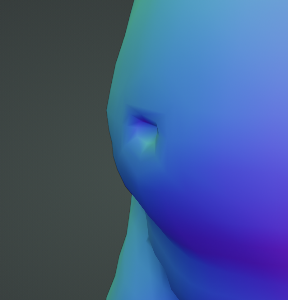after completing the hair model, i added a few extra details, like the belly button and nostrils.
