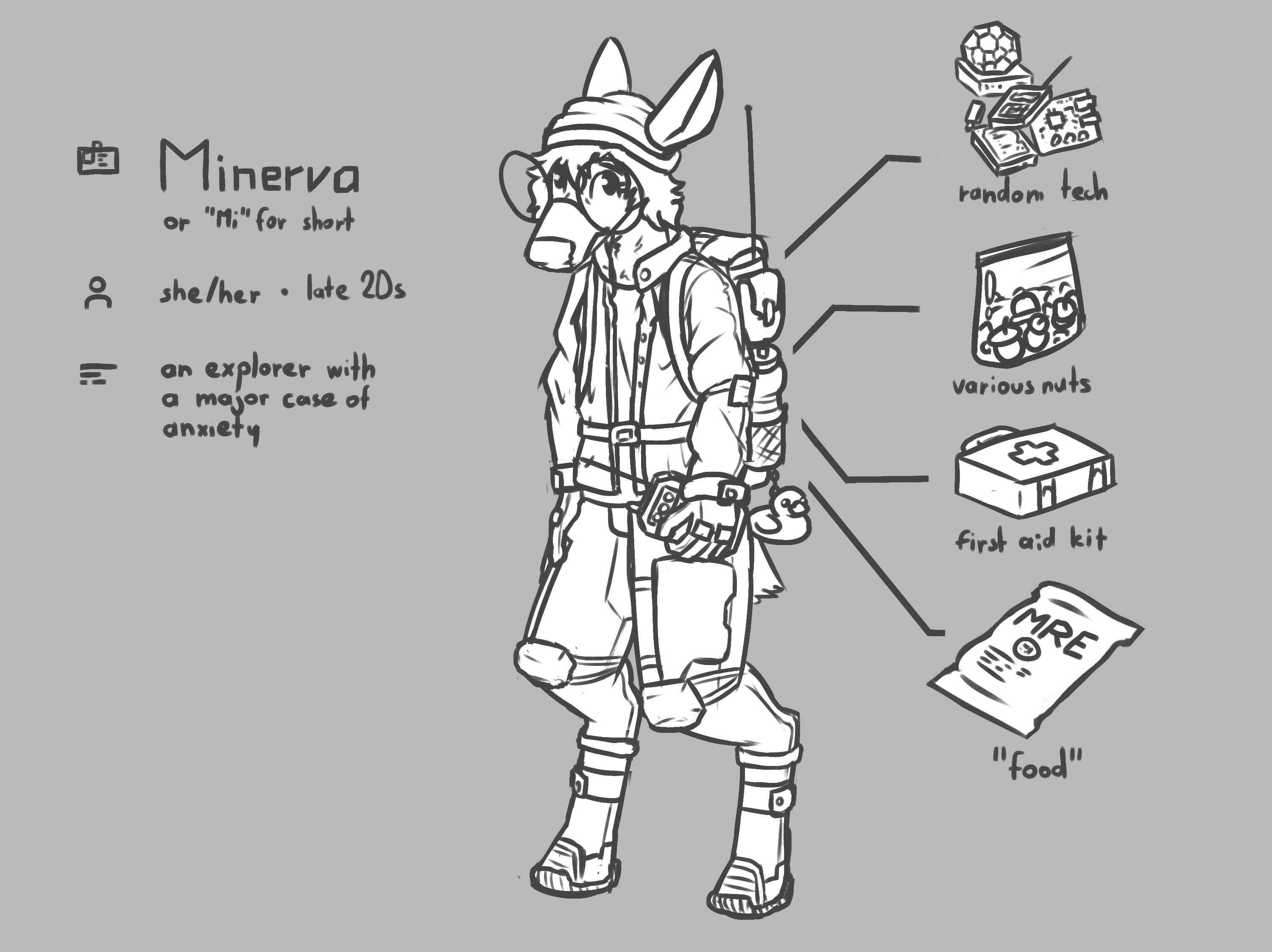 concept art for a character for my ongoing art project. her appearance is heavily based on a fan interpretation of dr. kel from votv i saw online. this was drawn before "arrival" if you're curious!